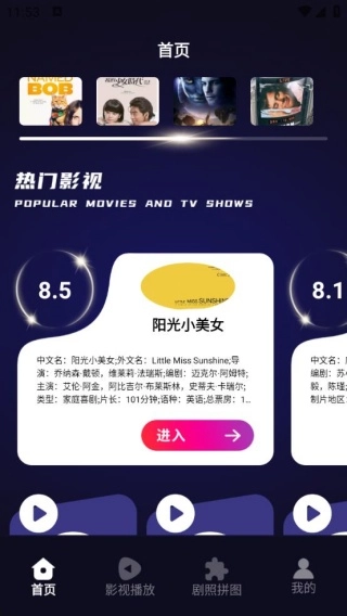 2、在首页呈现热门影视的封面、评分、简介等信息,便于用户浏览与选择。