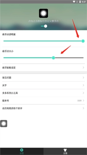1、打开小白点虚拟按键软件后,能在设置里对悬浮点的透明度与大小进行调节;