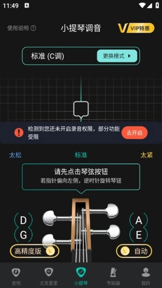 进入尤克里里调音界面后,可选择标准C调、低音G等多种调音模式,为大家提供了更自由的使用体验。