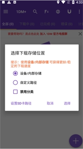 随后会弹出一个对话框,提示选择文件的存储路径,通常无需额外设置,直接点击“选择”即可。