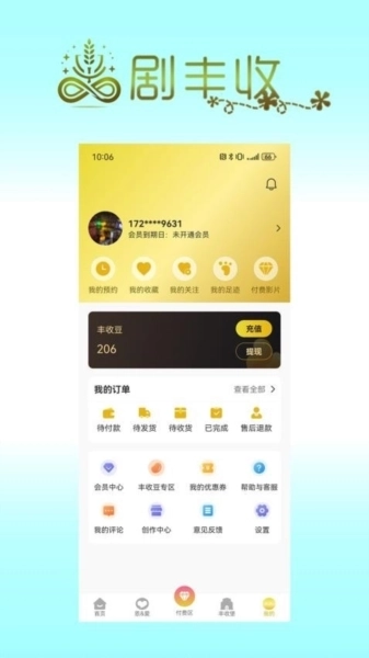 剧丰收是由大连佳佳影视有限公司打造的一款能够观看视频的影视类软件,软件向用户提供各种热门电影、电视剧、综艺节目等内容,保证用户第一时间观看到最热最新的影视作品。除此以外,软件还汇聚了海量精彩的短剧,短视频包含了励志故事、生活技巧等正能量的内容,使用户在观看过程中体会到积极向上的情绪。平台还支持用户创作出自己的短视频作品,能够随意的分享发布出去,在作品集中就可以查看自己的短剧,轻松赚取视频的收益。此外,剧丰收还支持用户对自己的订单进行查看,在付费区中可以购买观看付费视频,趣味观看。对于喜欢看剧的小伙伴们来说剧丰收是你绝对不可错过的优质应用,快来吧!