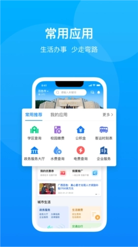 百色通专注于本地化服务领域,力求为每位用户打造优质的使用体验。无论是及时的本地资讯、实用的查询功能(涵盖水电气缴费、校园费用缴纳等场景),还是商家福利信息、线上支付服务,都致力于让日常生活的各类事务变得更简单。不管您是想查找商家详情、获取本地专属优惠,或是处理各类日常事务,百色通都能成为您生活里贴心且实用的好帮手。