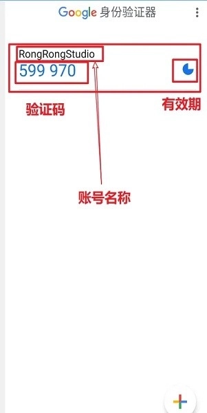 然后重新打开谷歌身份验证器,进入首页后,就能看到账号下方显示着一个验证码。