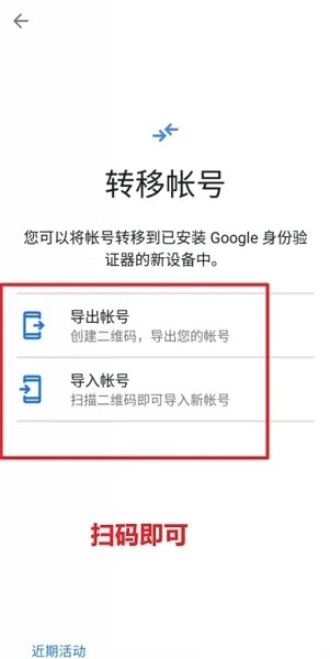 要是您更换了手机,能够借助扫码的方式迁移谷歌身份验证器的数据。