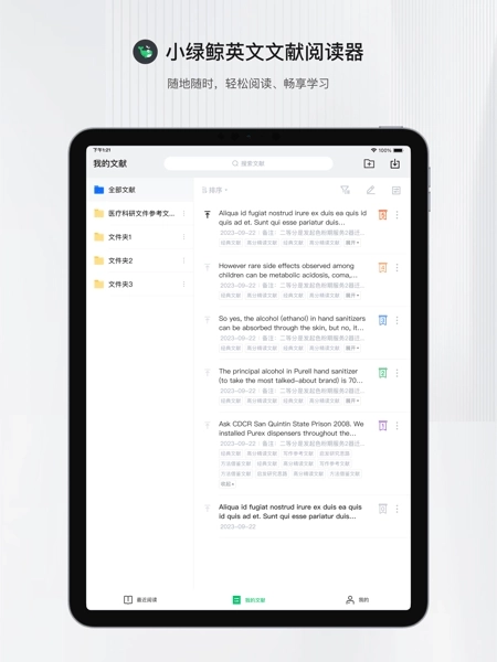 小绿鲸手机版是见鲸科技(南京)有限公司开发的文献阅读软件,专门面向科研人员设计,集成了翻译、笔记、文献管理、写作等实用功能。该软件配备5大专业学术翻译引擎,支持平板端、网页端、客户端3端同步(暂不支持手机端),可实现阅读数据跨设备同步,帮助用户随时随地高效处理文献,全面提升科研工作效率。