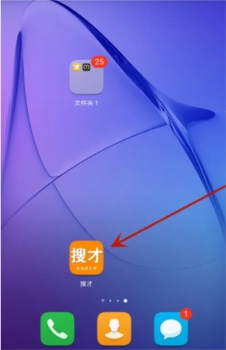1、点击手机桌面安装好的“搜才”图标