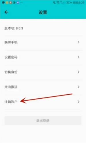 4、点击箭头指向的“注销账户”选项