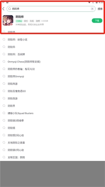 2、在搜索框中输入想要查找的游戏,比如输入“阴阳师”,系统就会展示出本站内所有和阴阳师相关的信息内容。