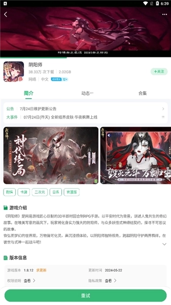 3、选择带有指定两字的页面点击进入,就能看到该游戏的相关简介、动态以及版本信息等内容。