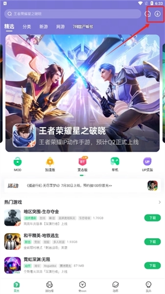 首页每天实时上新百款游戏,涵盖正版、BT等多种资源类型,同时推送游戏圈的最新动态。顶部的搜索栏具备关键词联想功能,能实现智能搜索,输入游戏名称就能迅速找到目标;下方则有依据用户偏好生成的个性化推荐板块,新上线的游戏和当下热门的游戏都清晰可见,让你轻松摆脱不知道玩什么游戏的困扰。