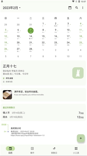 4.小工具:一叶日历还提供了一些实用的小工具,例如计时器、倒计时、天气预报等,方便用户在生活中使用。
