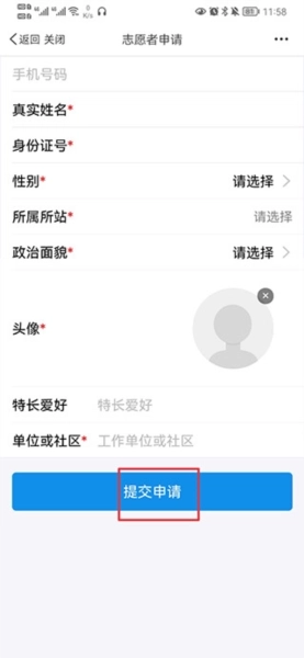 3、然后将信息填写,进行申请;