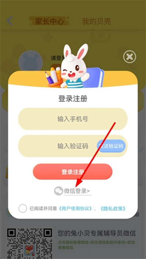 2、来到家长页面,选择以手机号码、微信或是QQ的方式登录。