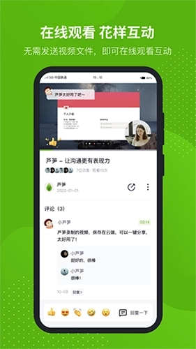 通过录屏演示操作步骤,能更高效、直观地为客户解决问题,从而提高客服的工作效率与客户的服务体验。知识分享方面,支持随时随地方便地录制知识讲解内容,录制完成后可迅速在线分享给他人;观看者在浏览内容时,还能通过评论功能向分享者提问,实现双方的互动交流。