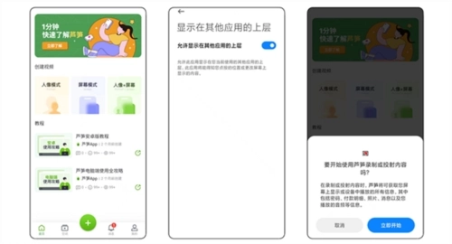 2、点击加号开始录制,选择「允许芦笋悬浮在所有应用的最上层」以调用录制悬浮球,然后点击「立即开始」