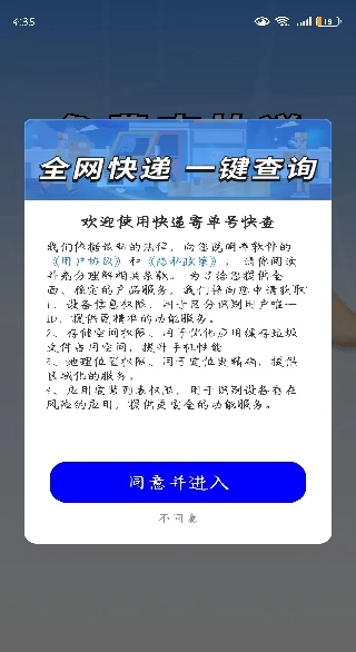 首次使用时,需阅读并同意用户服务协议,同时完成基础授权操作。