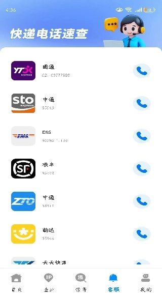 4、客服中心整合了各大快递公司的联系方式,用户可一键拨打进行咨询。