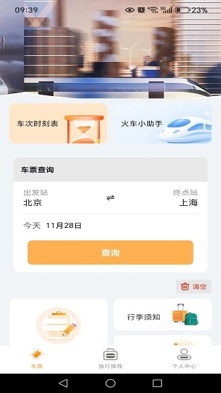 1、启动软件后输入目的地,所有车次信息即刻呈现,无需逐个查找,既节省时间,又让出行变得更轻松。