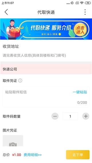 3、还有代取快递功能,直接填写消息之后,就能取件。