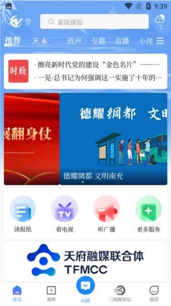 1、第一步是下载并安装南充融媒应用,安装结束后打开它,进入到主界面。