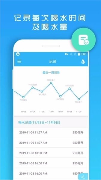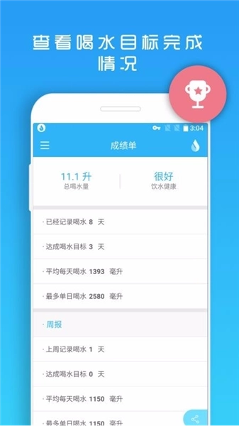 4、详细的数据报告让你能更好地管理成绩单,便于掌握喝水的时间;