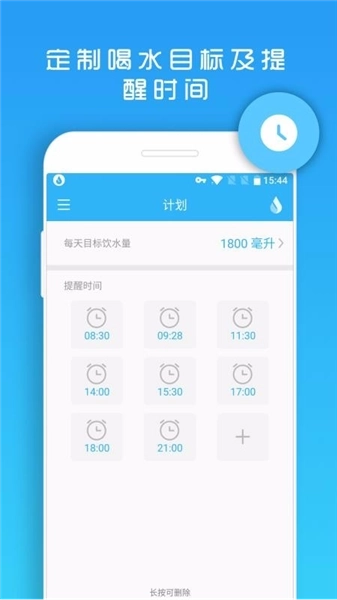 您可以自定义喝水提醒时间,提醒您不要忘记每日饮水。