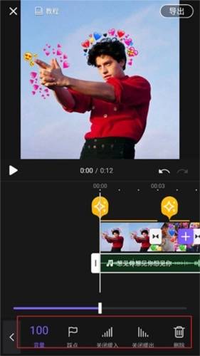 视频音乐功能:可添加背景音乐,自由调节音量大小,还能对音乐进行片段式裁剪。