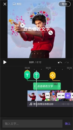 6、同样支持添加文字功能:先把要添加的文字拖动到目标位置,接着点击下方的文字区域,输入自己想表达的内容,最后确认即可。