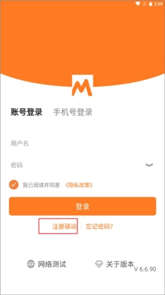 1、打开后,你会自动进入登录界面,此时可点击下方的“注册驿站”按钮。
