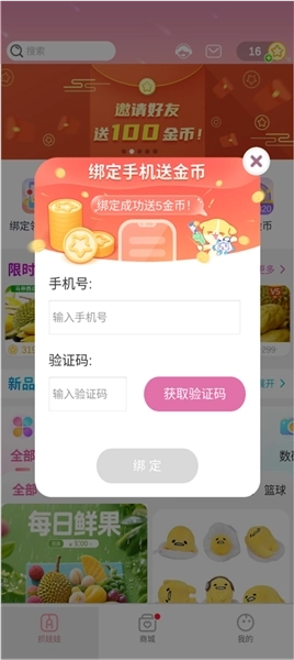 1、抓抓星球首次绑定手机号可以获得5金币