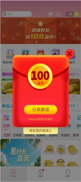 3、首页的金币大派送活动填写邀请码