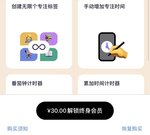-在专注过程中,要是需要用手机查字典、搜索资料之类的,可以开通Pro功能,这样就能允许中途“开小差”啦