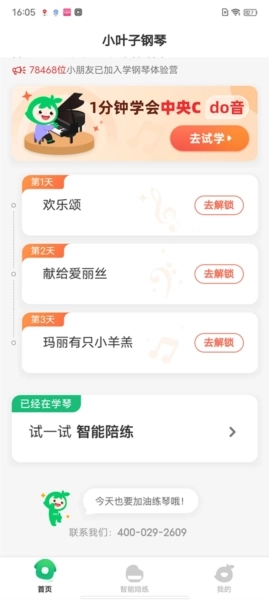 1、请先在本站安装该应用,完成档案问答环节,这样小叶子才能为你安排适合的琴谱。