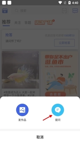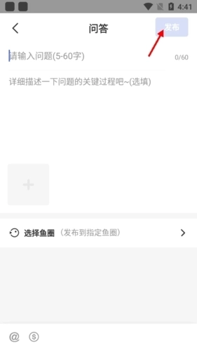 3、在这里输入自己想要提问的问题,并且选择相对应的鱼圈,然后发表。
