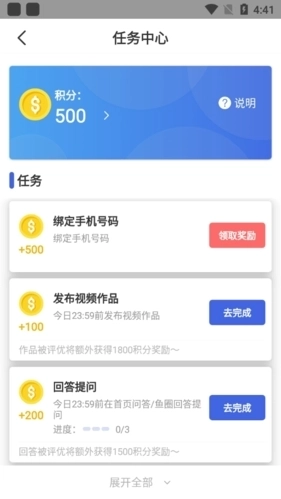 2、在任务中心里可以看见目前用户拥有的全部积分,并且各种任务。