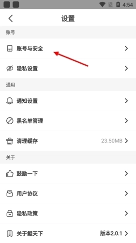 3、进入后选择页面最上方“账号与安全”,这也是用户更改密码、修改绑定手机的地方。