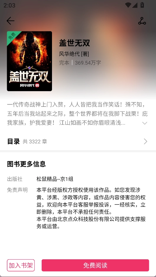 1、在小说详情页内点击免费阅读
