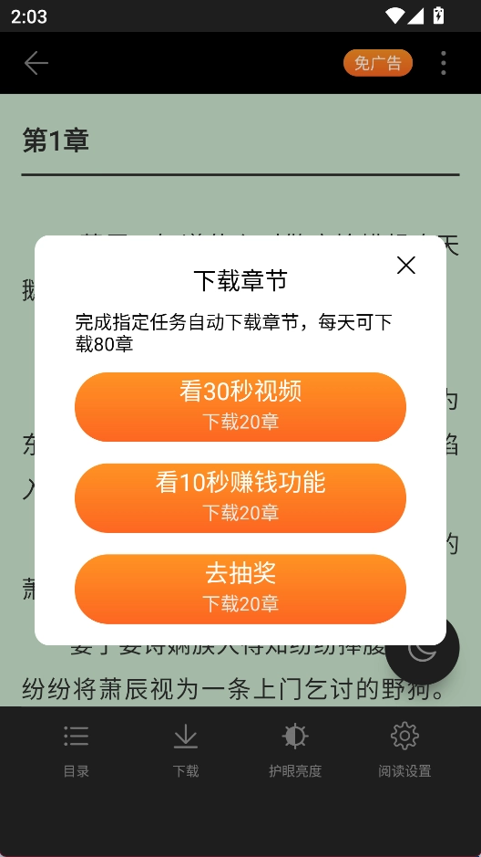 3、选择一个任务完成即可免费20章