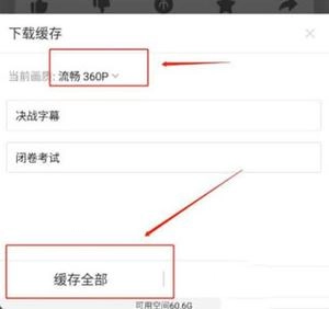 4. 选择需要的画质后,点击【缓存全部】