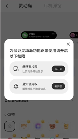 为了让灵动岛功能能够正常运行,烦请用户开启【悬浮窗权限】与【通知使用权】这两项权限。