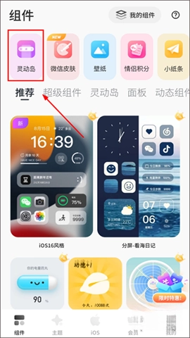 1、进入Colorful Widget应用后,在首页上方点击【灵动岛】选项。