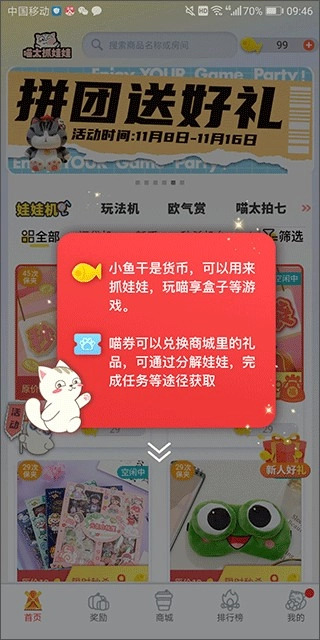 5、福利丰厚多样,单人游玩也能吸引全国目光,线上抓娃娃从此告别孤单