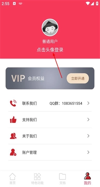 打开软件后,点击右下角的“我的”进入个人页面,就能看到会员权益、联系我们等功能选项。