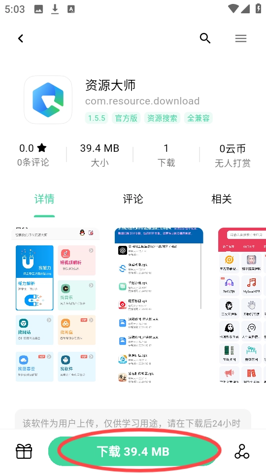 3、随意挑选一个你感兴趣的资源,这里拿“资源大师”来举例。