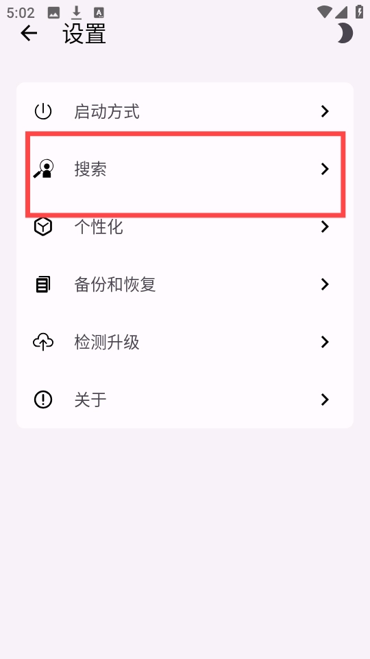 3、再接着点击右下角的设置按钮,然后点击“搜索”。