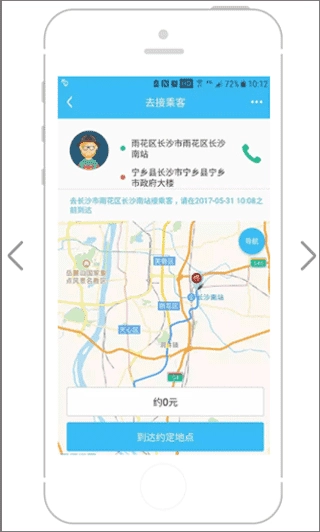 3、接到乘客后,点击到达约定地点,开始行程