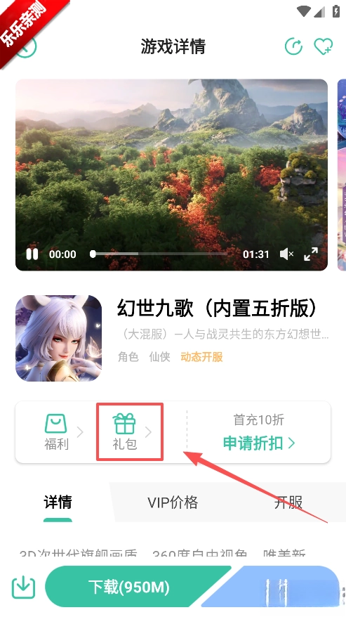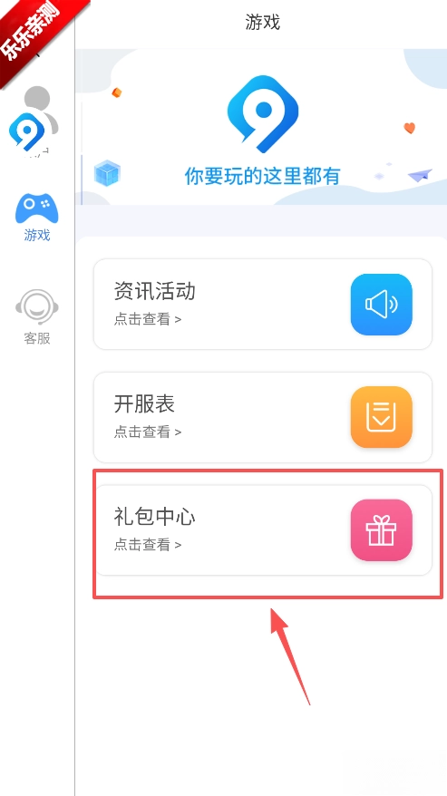 4、然后在游戏栏目点击礼包中心