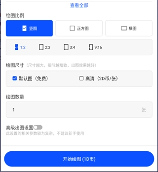 3、接着选择好需要的绘图比例、尺寸和数量,点击下方【开始绘图】选项,