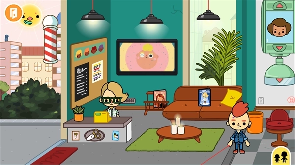3、进入理发店等店铺内部场景后,能看到服务台、休闲区等区域布置,还可以和店内角色开展相应的服务类互动。