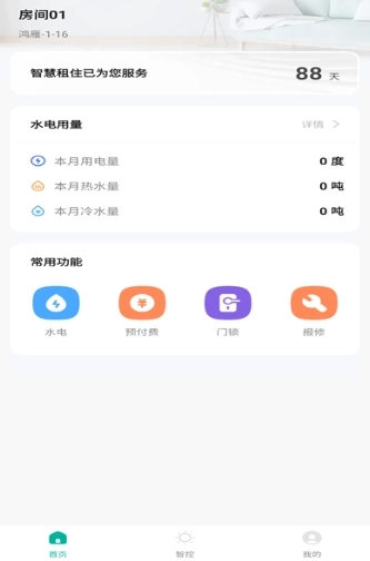 1、打开鸿雁智公寓,在首页可以看到房间水电用量。